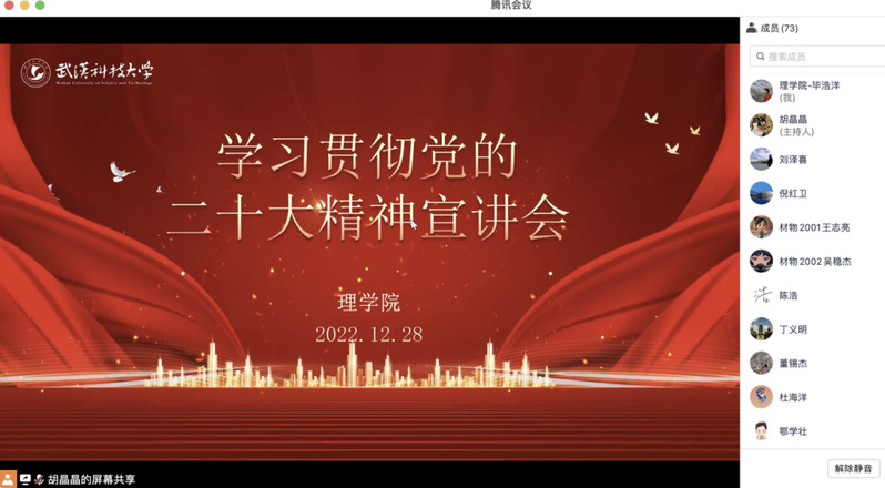 武科大网讯(通讯员毕浩洋)12月28日上午,校长倪红卫为理学院师生作学习贯彻党的二十大精神宣讲报告。学院全体领导班子成员、各党支部书记、教师及学生代表参加了本次学习,院党委书记刘泽喜主持本次宣讲会。