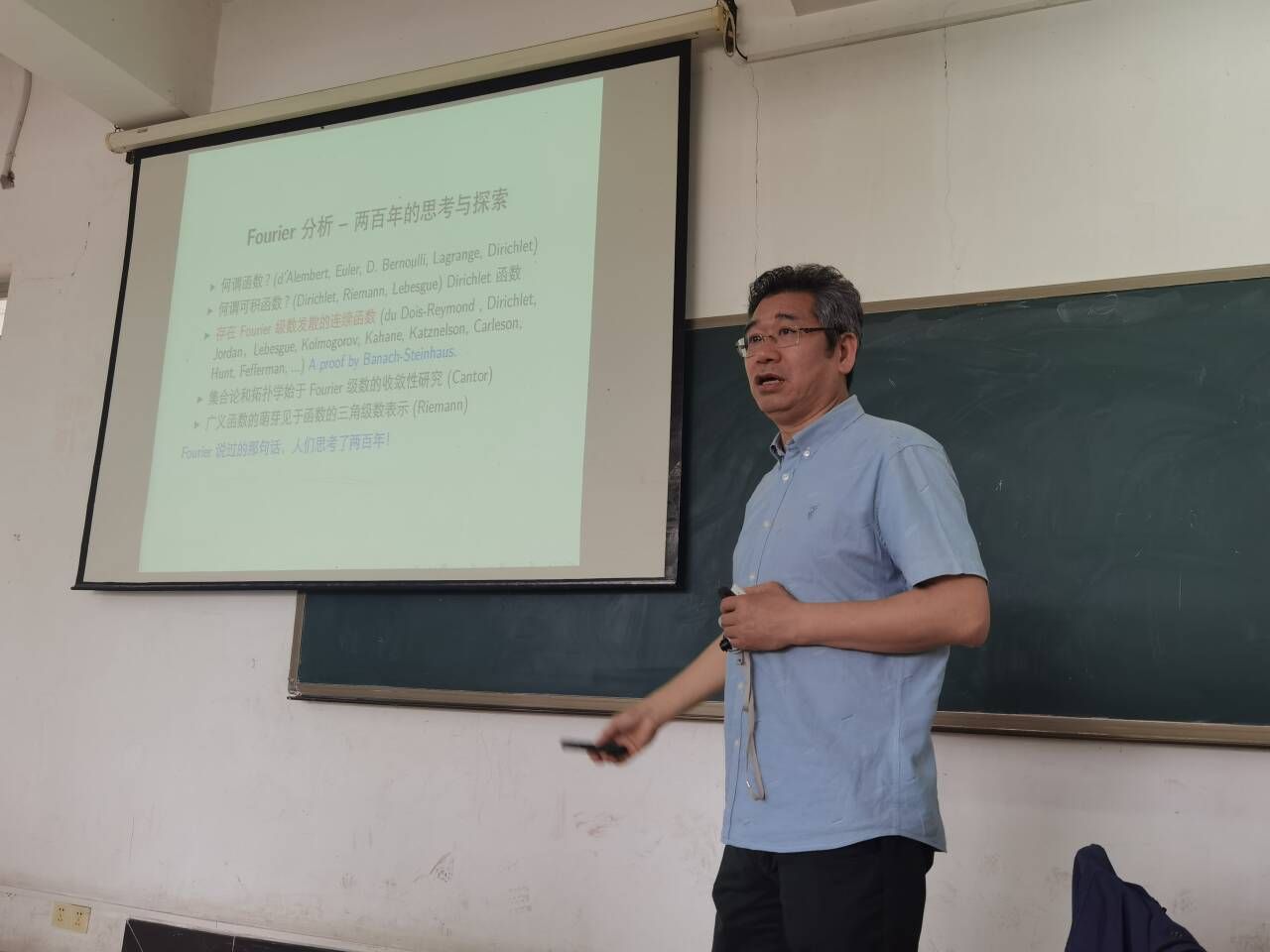范爱华教授从Fourier的生平简介切入主题,从历史的角度解读傅立叶分析的发展。他表示,除了Fourier本人,19世纪的傅立叶分析研究的功绩归功于三位德国学者Dirichlet,Riemann和Cantor,20世纪傅立叶分析的重生归功于法国学者Lebesgue的积分论。