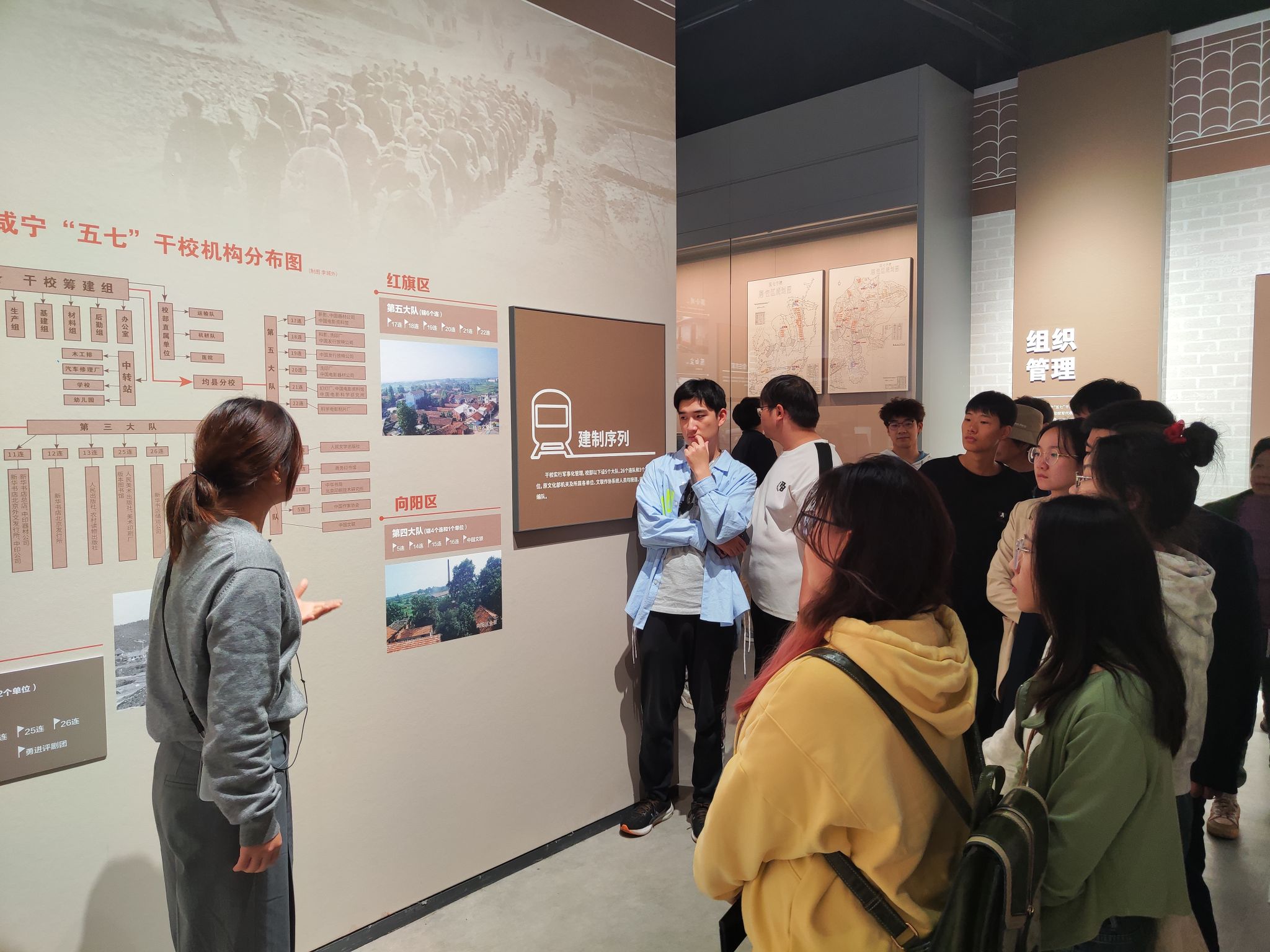“向阳湖意味着一片红心向太阳。”向阳湖名人博物馆的主讲人介绍道。主讲人为学生们科普了向阳湖和五七干校的历史,介绍了文化部咸宁干校中的部分文学家、艺术家,传达了五七干校的学员们积极向上、不懈奋斗的生活态度。