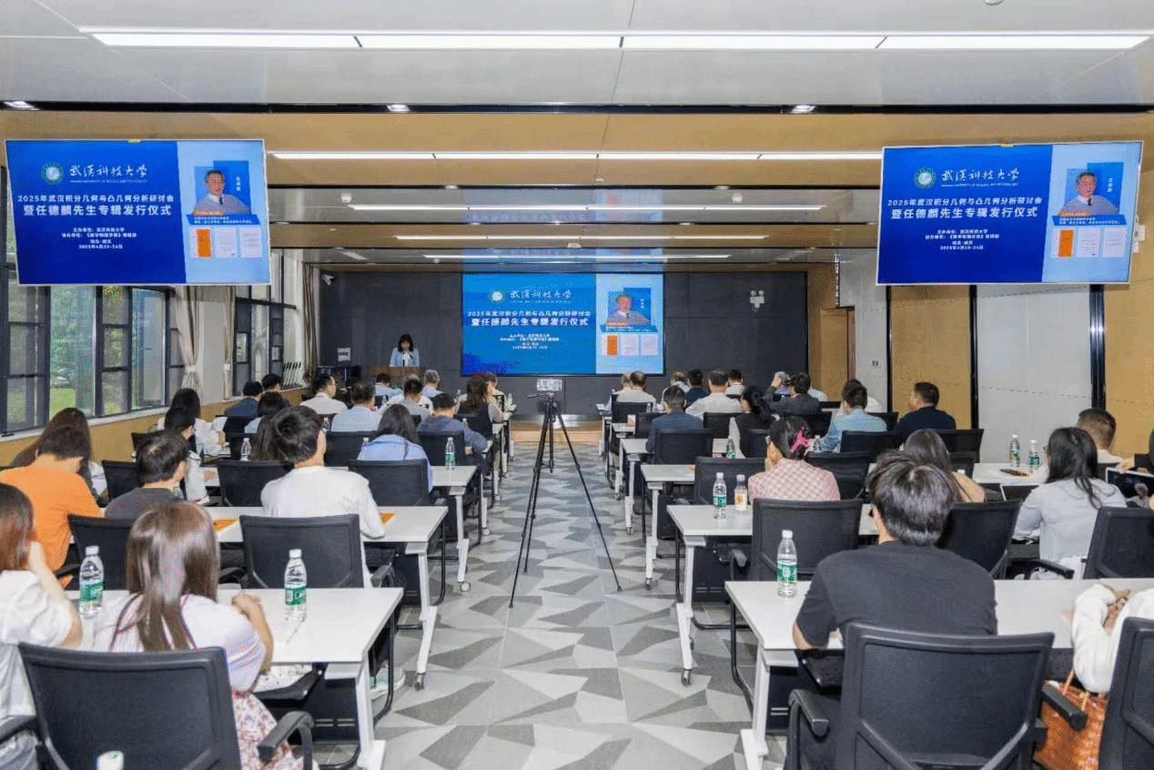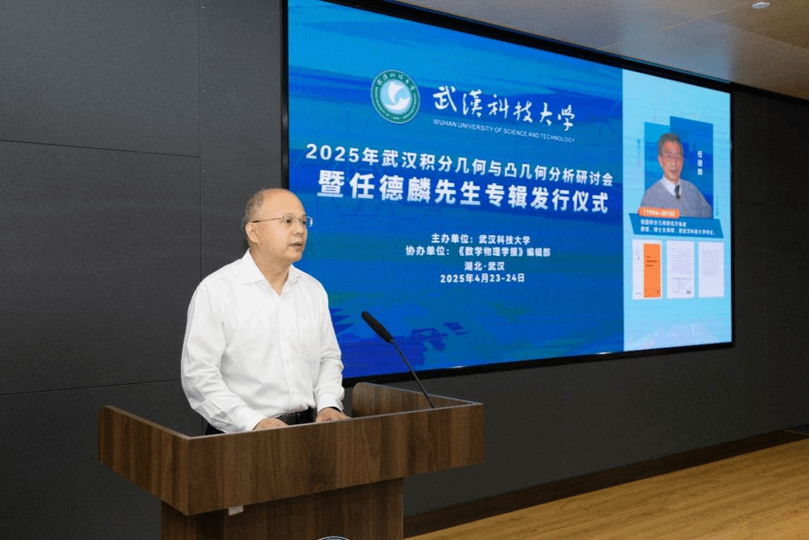 4月23日至24日,由武汉科技大学主办、《数学物理学报》编辑部协办的“2025年武汉积分几何与凸几何分析研讨会暨任德麟先生专辑发行仪式”在武汉科技大学隆重举行。中国科学院院士张伟平教授,复旦大学傅吉祥教授,陈省身数学研究所冯惠涛教授,南京理工大学张希教授,贵州师范学院周家足教授,武汉大学陈群教授,同济大学熊革教授等国内外数学界知名学者齐聚一堂,共襄学术盛宴。