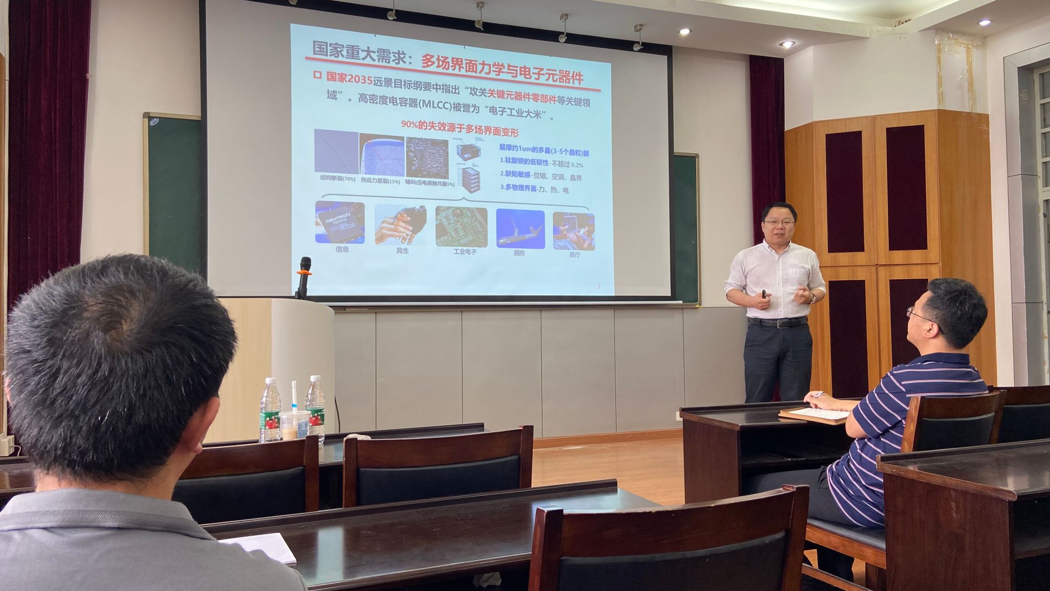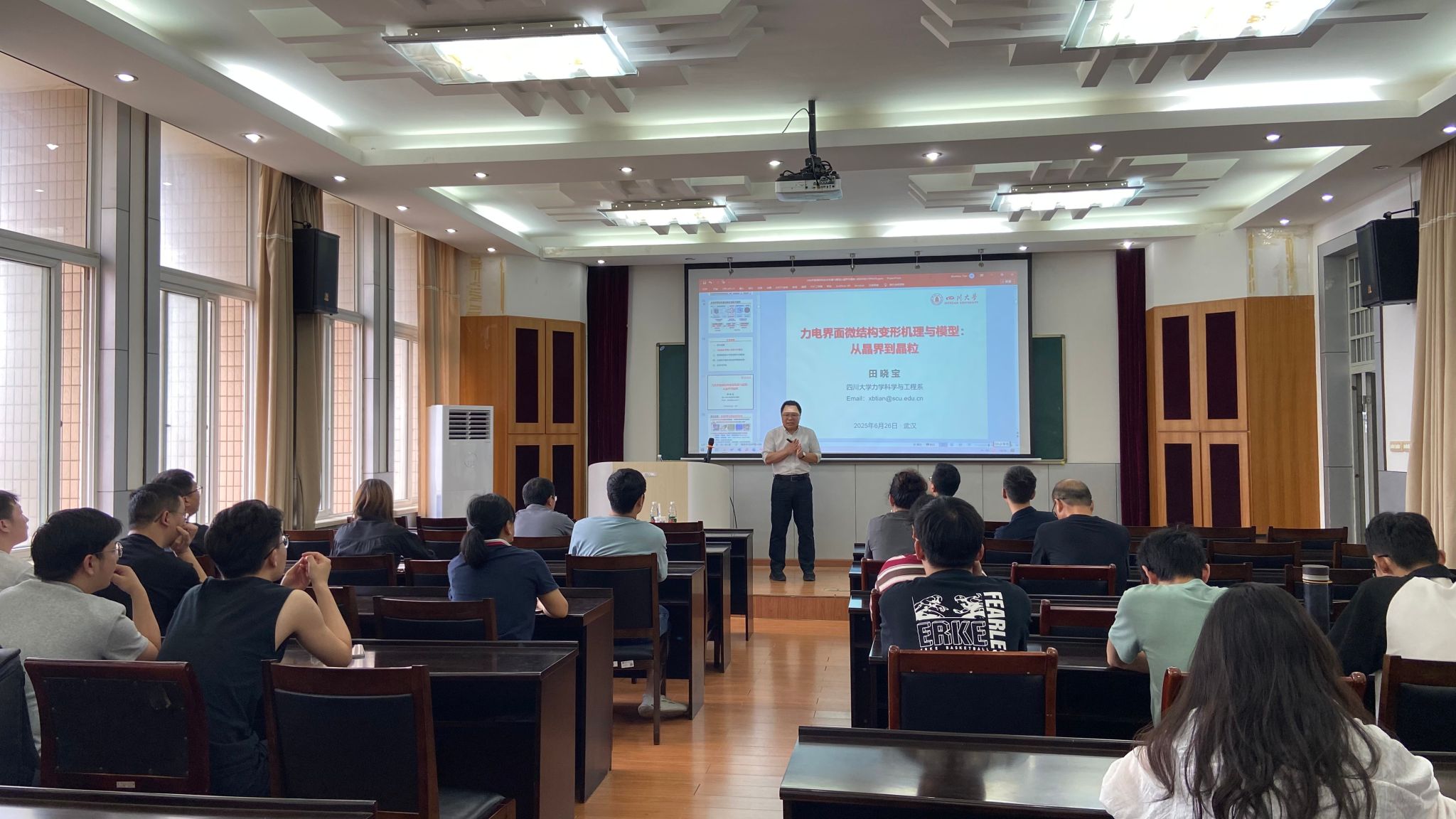 报告会在理学院五楼学术报告厅举行,田晓宝教授的报告题目为“力电界面微结构变形机理与模型:从晶界到晶粒”。主要介绍了多场界面微结构变形与演化行为的研究工作。