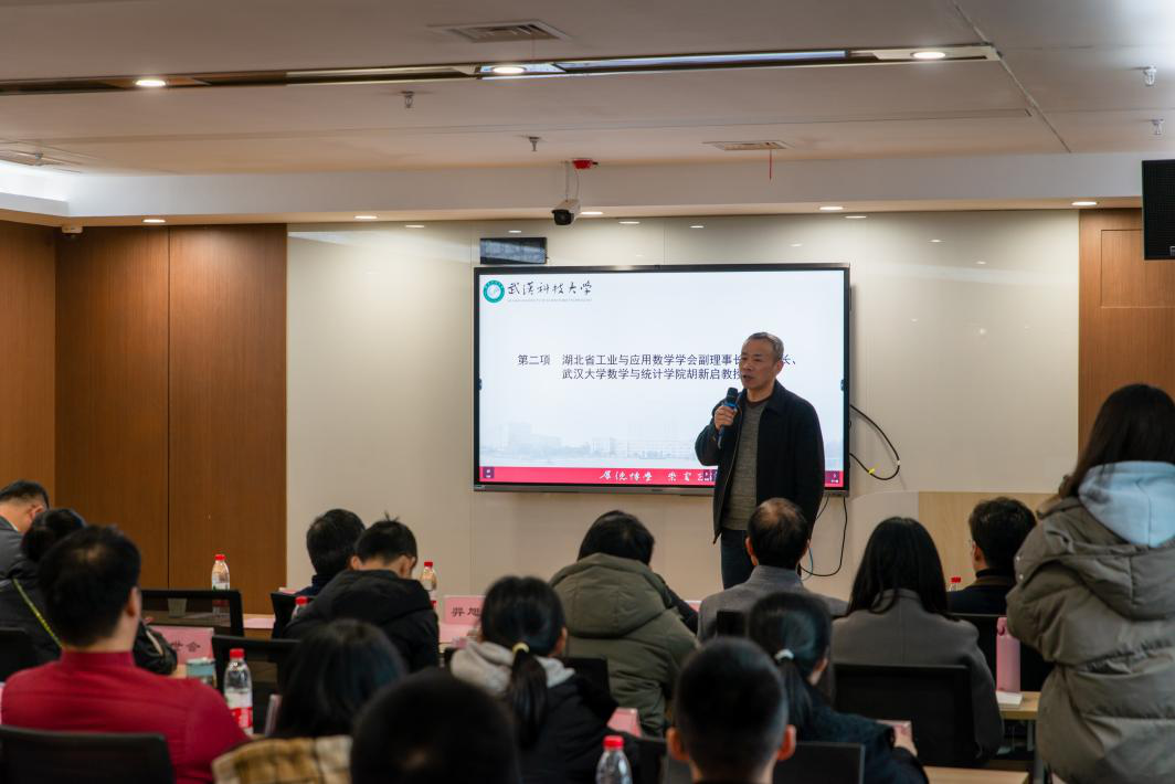 胡新启对我校近年来在数学建模竞赛中取得的成绩表示肯定,介绍了“华中杯”等数学建模赛事的发展历史、未来规划及其与理学院的渊源,并邀请我校师生更多参与相关赛事、交流活动。