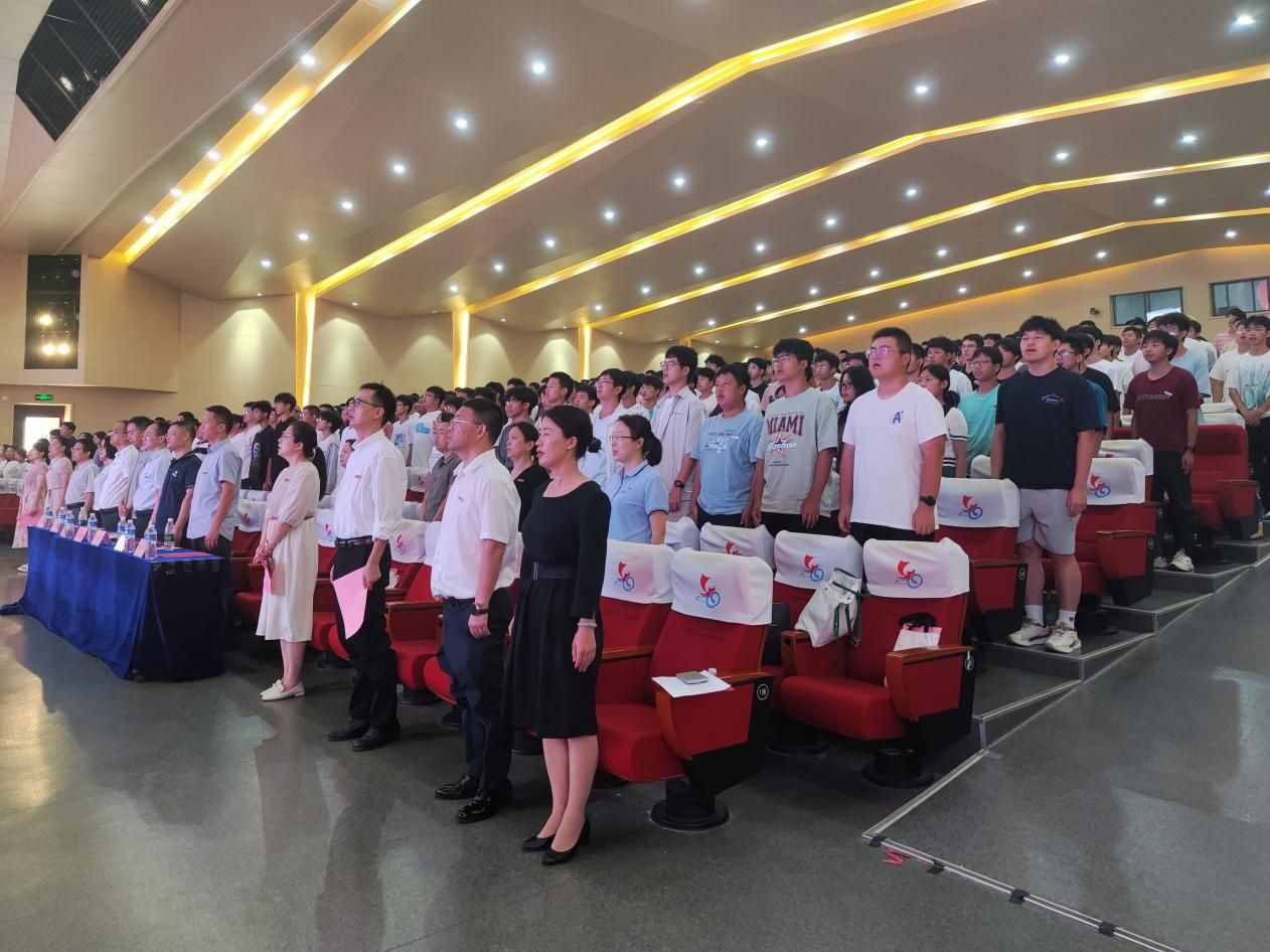 伴随着庄严的国歌旋律,全体师生肃立齐唱。随后,王文涛发表了典礼致辞。他全面回顾了我院近年来在学科建设、科研创新及教学质量上取得的成就,并就如何充实地度过大学生活这个问题对新生们提出了立鸿鹄志、做高尚者、练真本领的几点希望。