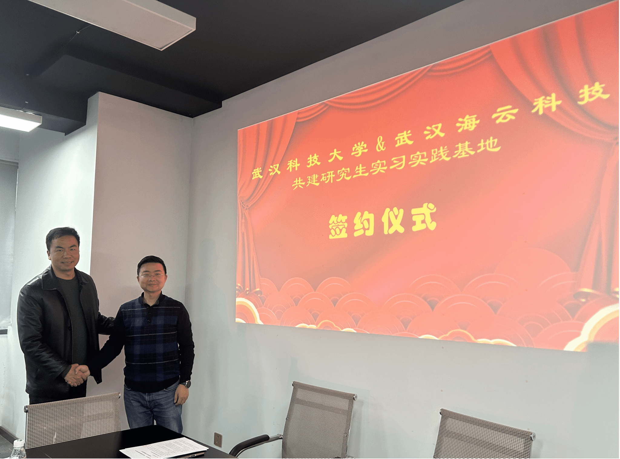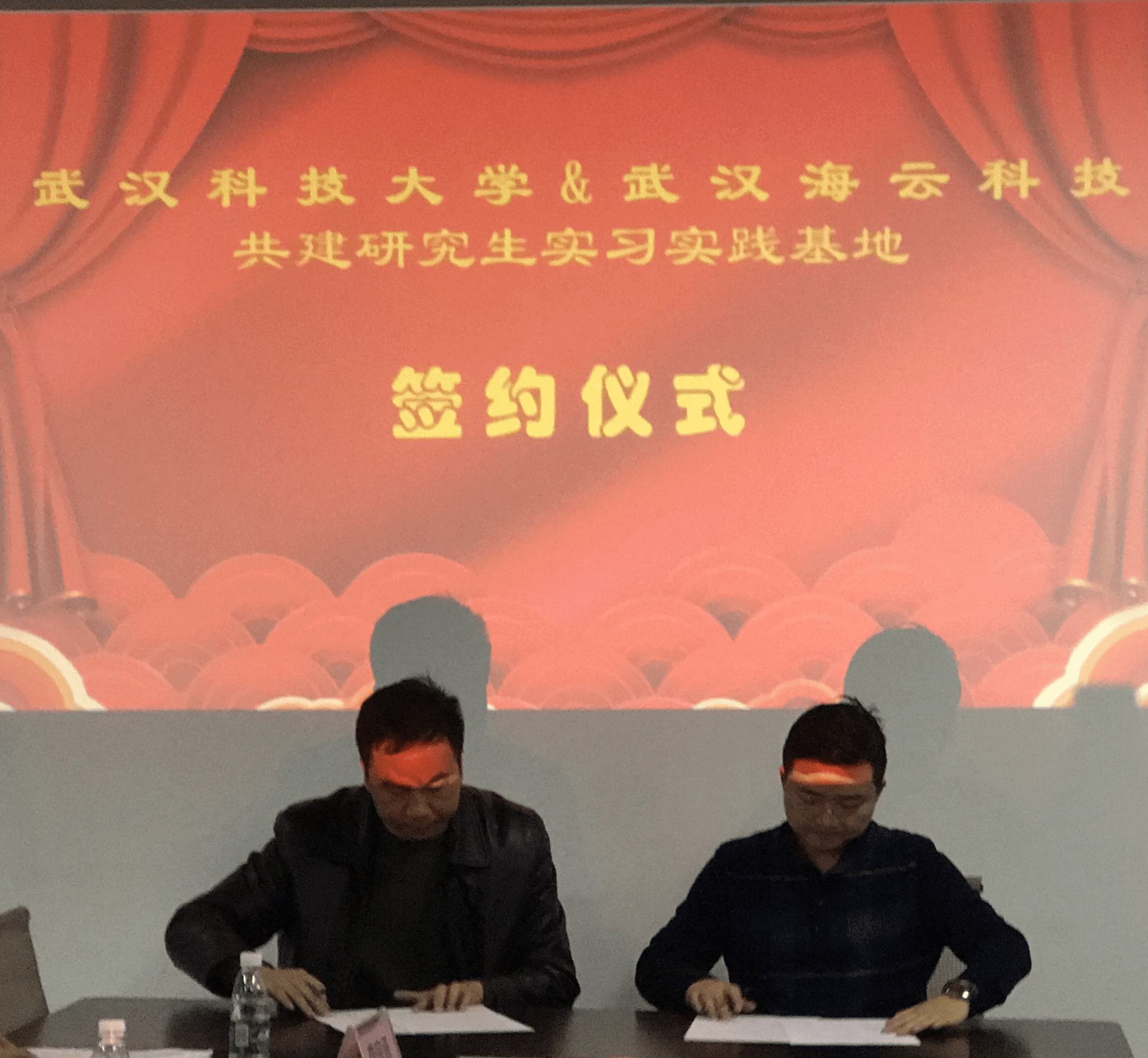 接下来,武汉科技大学理学院副院长何理和武汉海云健康科技股份有限公司董事沈章签订了《武汉科技大学-武汉海云健康科技股份有限公司共建研究生实习实践基地协议书》。