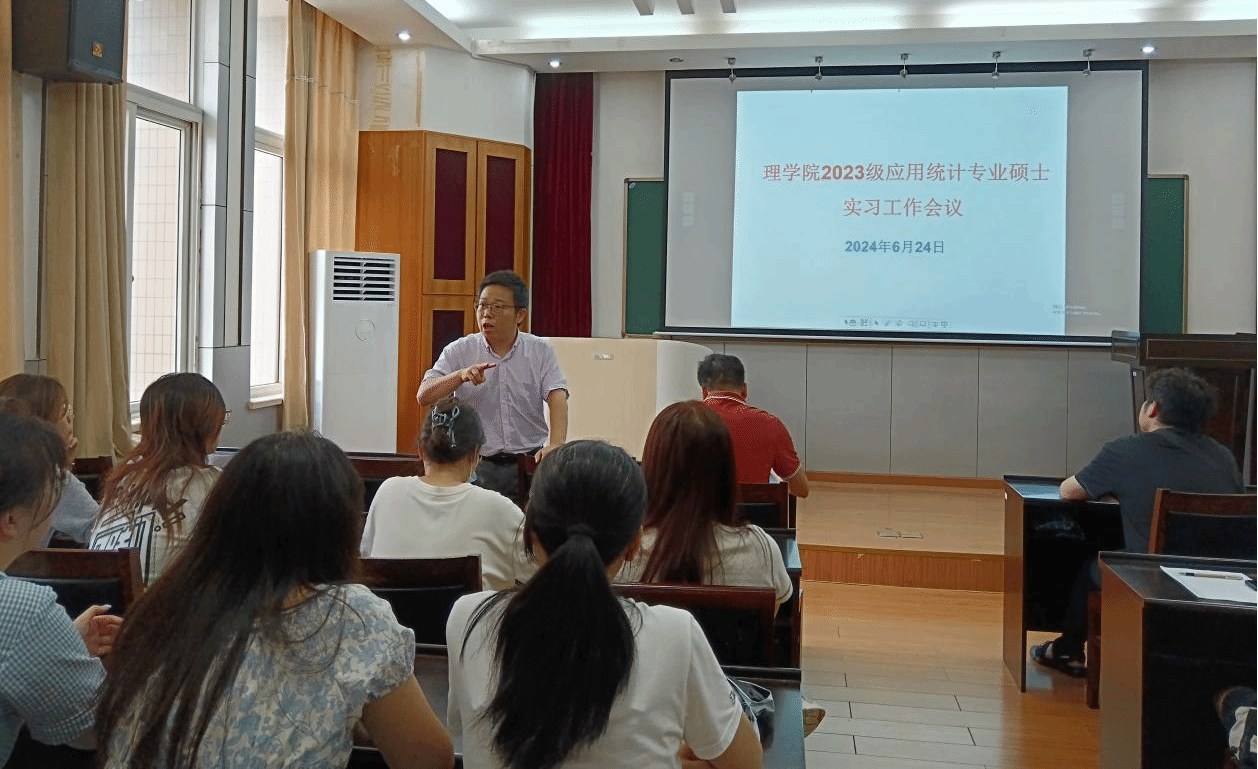 624日上午,理学院2023级应用统计专业硕士实习工作会议教二22515举行。理学院院长何理、数学与统计系领导班子、导师代表和全体2023应用统计专业硕士研究生参加了会议,本次会议由数学与统计系副主任何晓霞主持。
