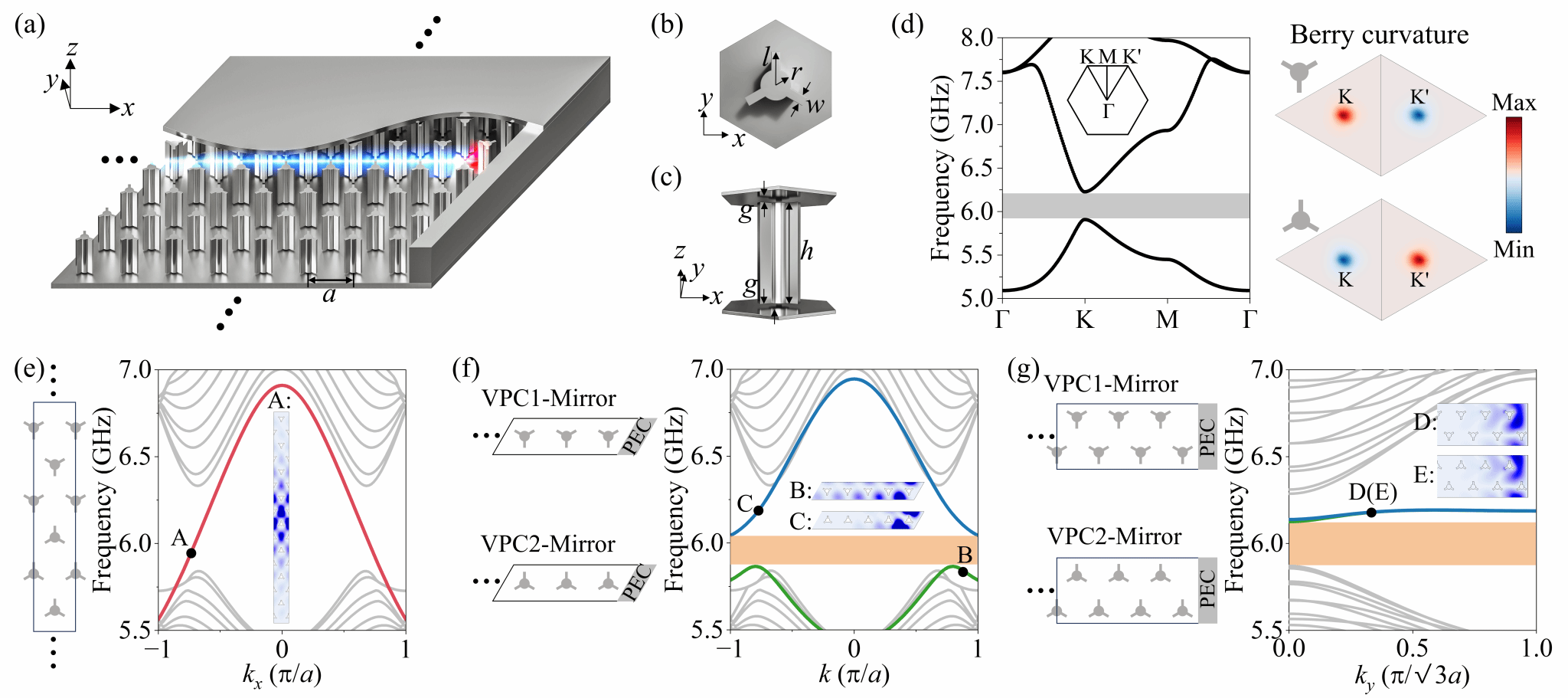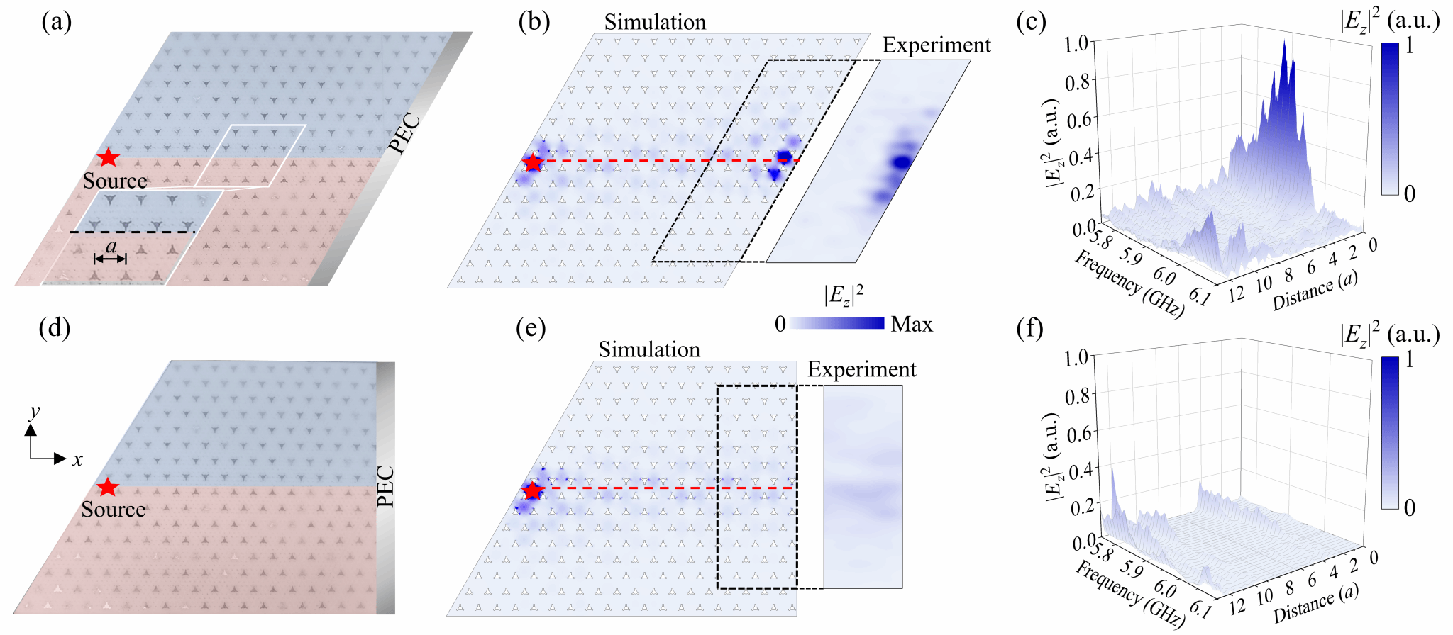 在这项工作中,该研究团队在VPC中首次实验实现了基于谷自由度近守恒的拓扑控制光子腔。通过VPC波导终端放置金属反射镜来构建拓扑控制光子腔,金属反射镜的几何形状和方向决定了谷翻转率和反射时延。通过微波近场测绘和脉冲传输测量,直接观测了拓扑控制光子腔的电场分布增强和延迟时间。通过实验证明,不同的反射镜的方向和形状会导致谷折射率翻转所需的不同时间延迟,实现不同程度的能量限制和品质因子。这些结果拓展了拓扑光子学的研究范围,丰富了光学微腔的基本物理原理。
