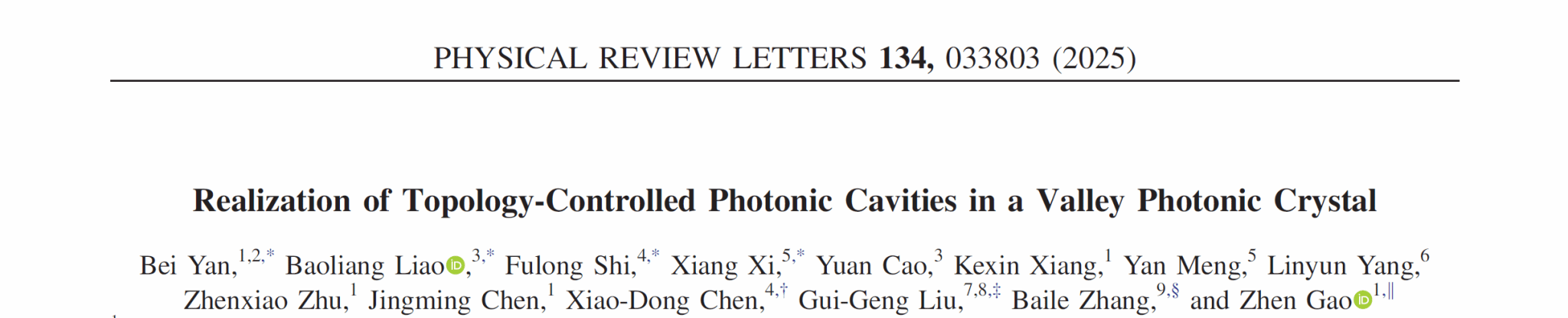 近日,我校理学院应用物理系青年教师颜贝与南方科技大学等单位合作首次在谷光子晶体中实验实现了新型拓扑控制光子腔,为鲁棒拓扑光子器件增加了新的成员。相关成果以“Realization of topology-controlled photonic cavities in a valley photonic crystal”为题发表在国际物理学顶级期刊《Physical Review letters》上。我校理学院应用物理系青年教师颜贝为该论文的第一作者,武汉科技大学为论文第二完成单位。