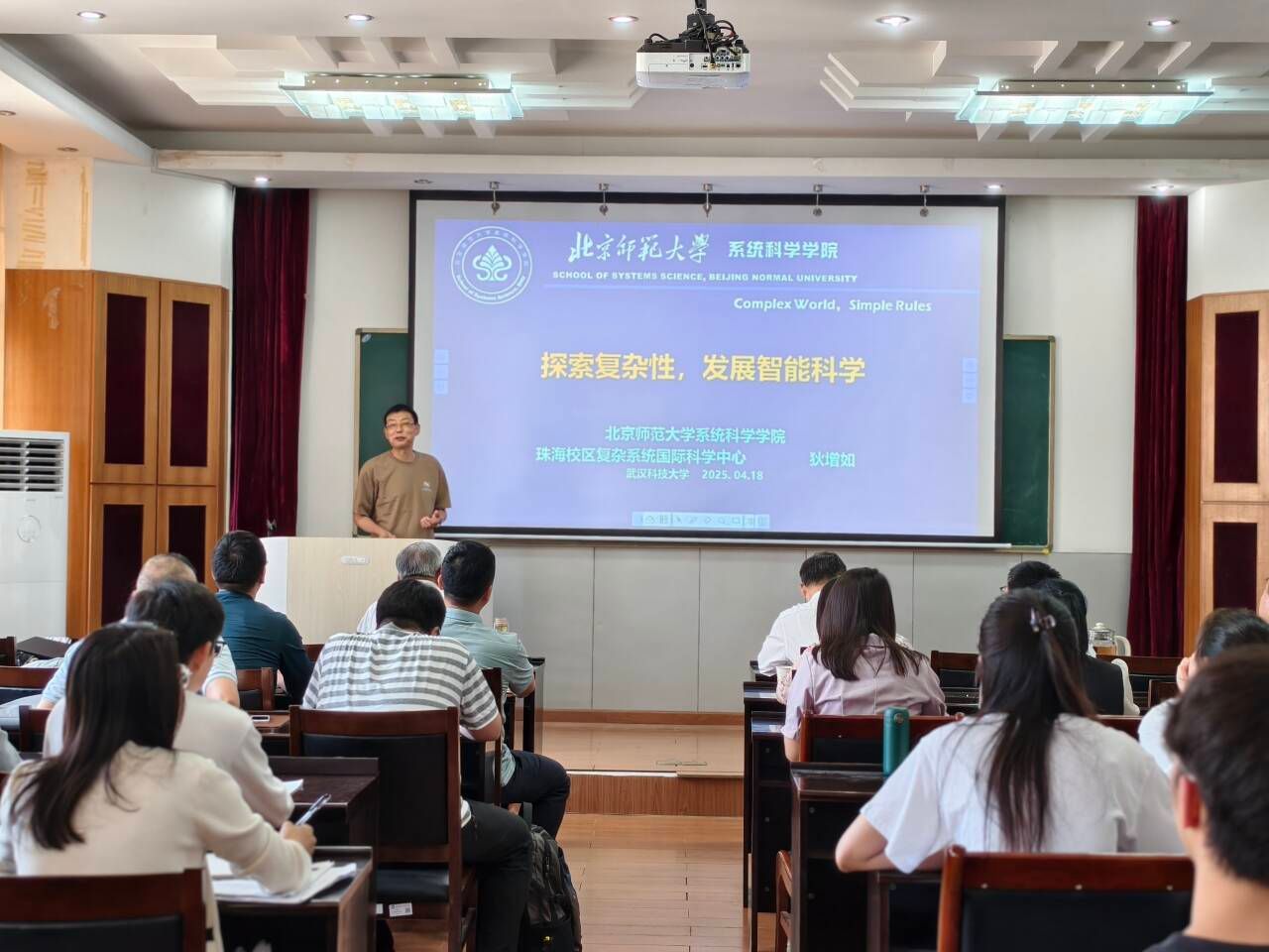 丁义明院长对狄增如教授的到来表示热烈欢迎,向在场师生介绍了狄教授在学术上取得的成绩。丁院长表明,本次报告会旨在分享狄教授在复杂系统科学领域的最新研究成果,并与师生探讨该领域的前沿问题。