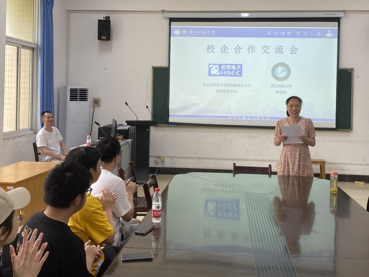 (通讯员理学院)6月2日下午,信息与计算科学专业校友,北京宏思电子技术有限责任公司武汉研发中心主任王磊,来理学院数学与统计系就校企合作和人才招聘进行了交流。交流会由数学与统计系教工党支部书记蒋君主持。教师代表、研究生和本科毕业生代表参加了此次报告会。